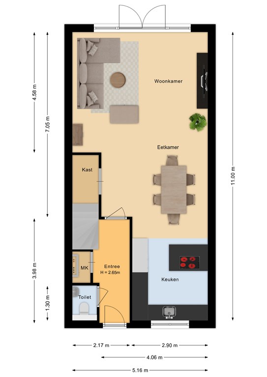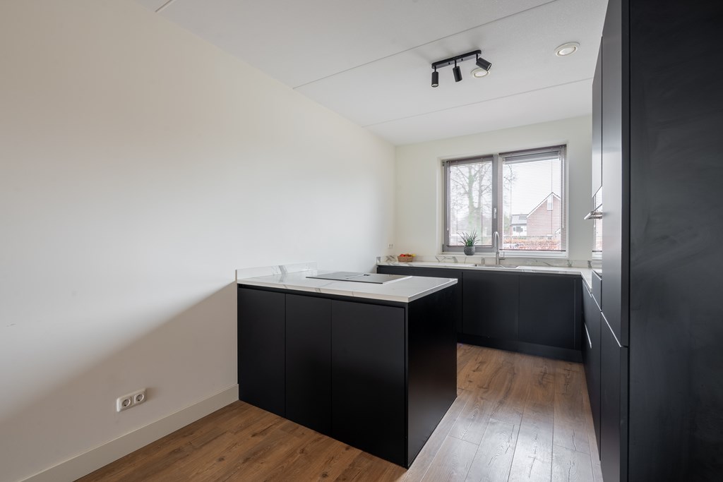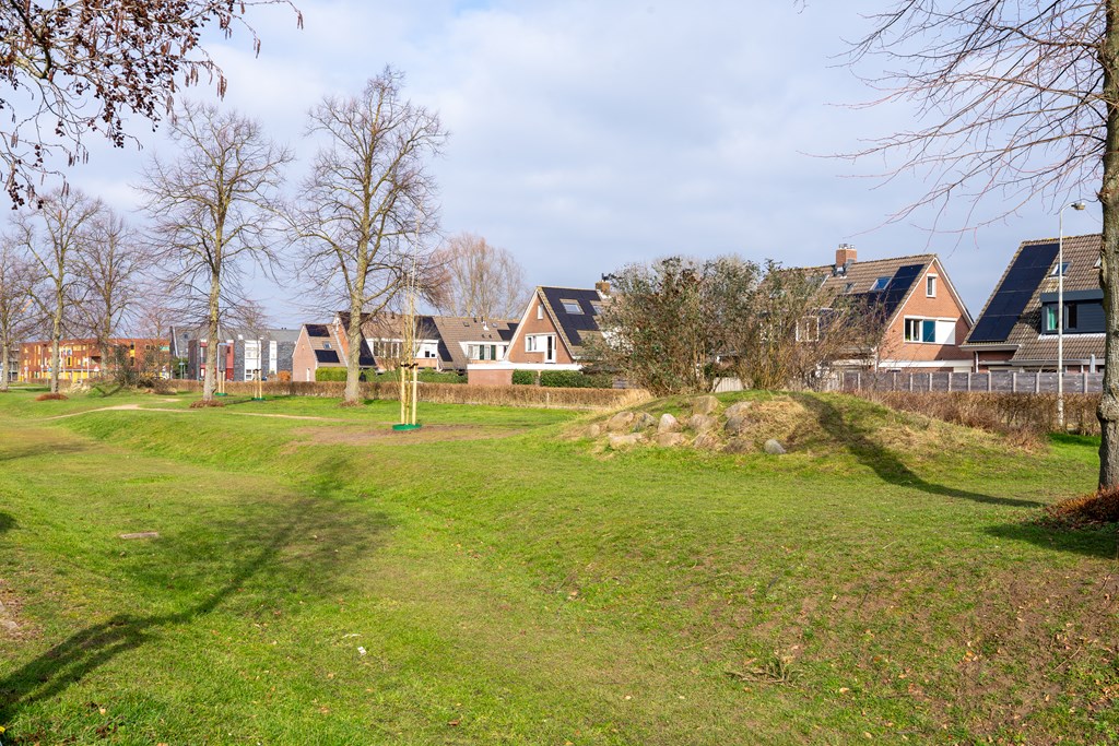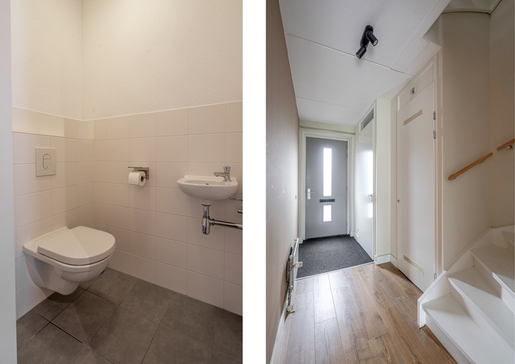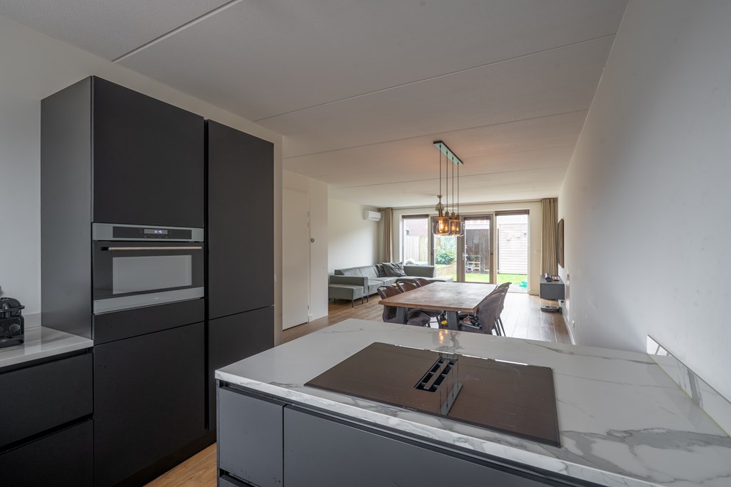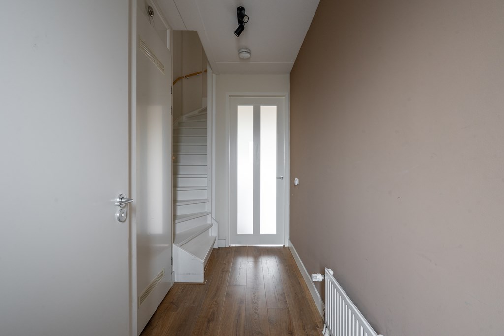 De auto parkeer je voor de deur en via de voortuin bereik je de woning. Je komt binnen in de hal met toegang tot het moderne toilet met fonteintje, trapopgang naar de eerste verdieping en deur naar de woonkamer. Aan de voorzijde van de woning vind je de moderne keuken uit 2021 met diverse inbouwapparatuur. Vanuit de keuken heb je uitzicht over het parkje met speelveld aan de voorzijde van de woning.
