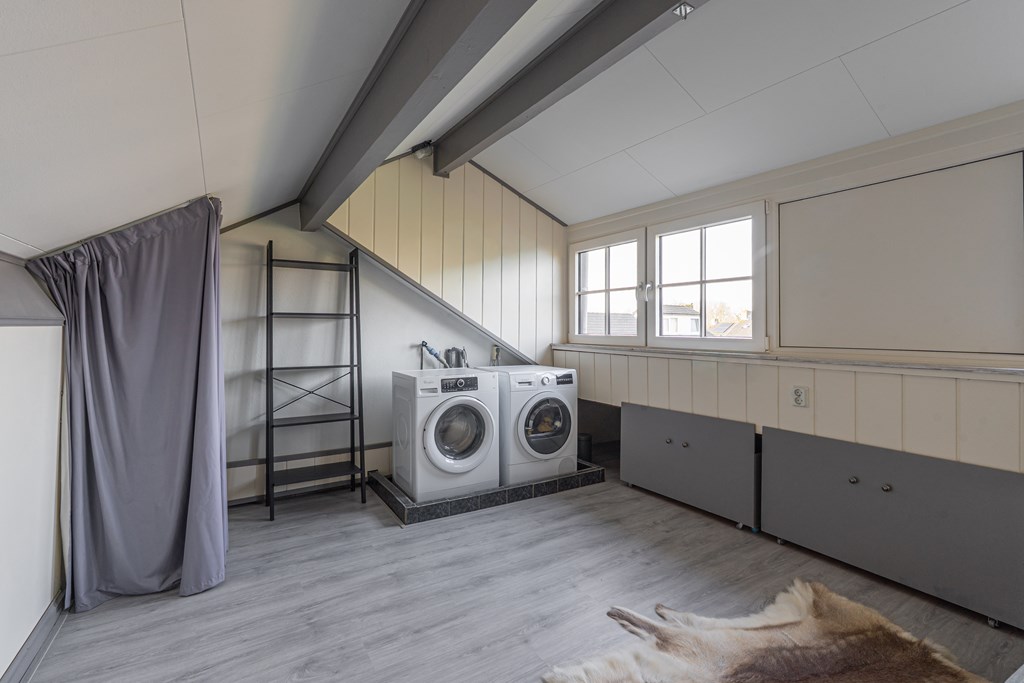 Door een dakopbouw is hier er nog een volwaardige verdieping ontstaan. In deze ruimte vind je tevens de aansluitingen voor witgoedapparatuur. Daarnaast is deze verdieping bijvoorbeeld ideaal als kantoor of logeerkamer.