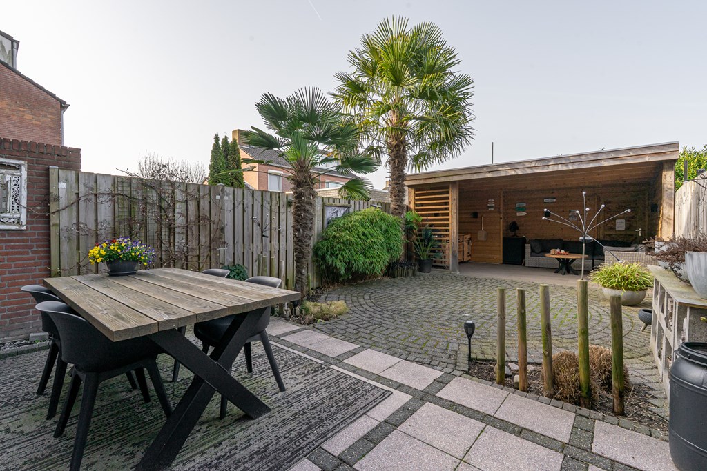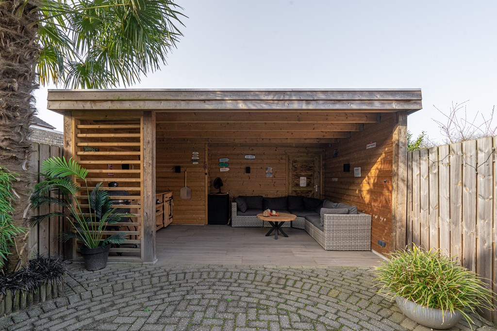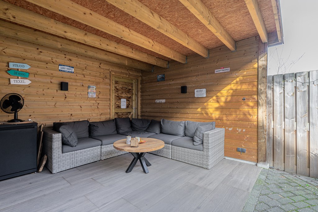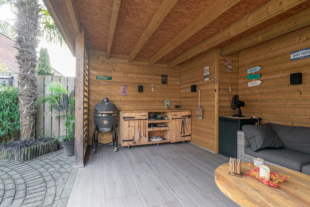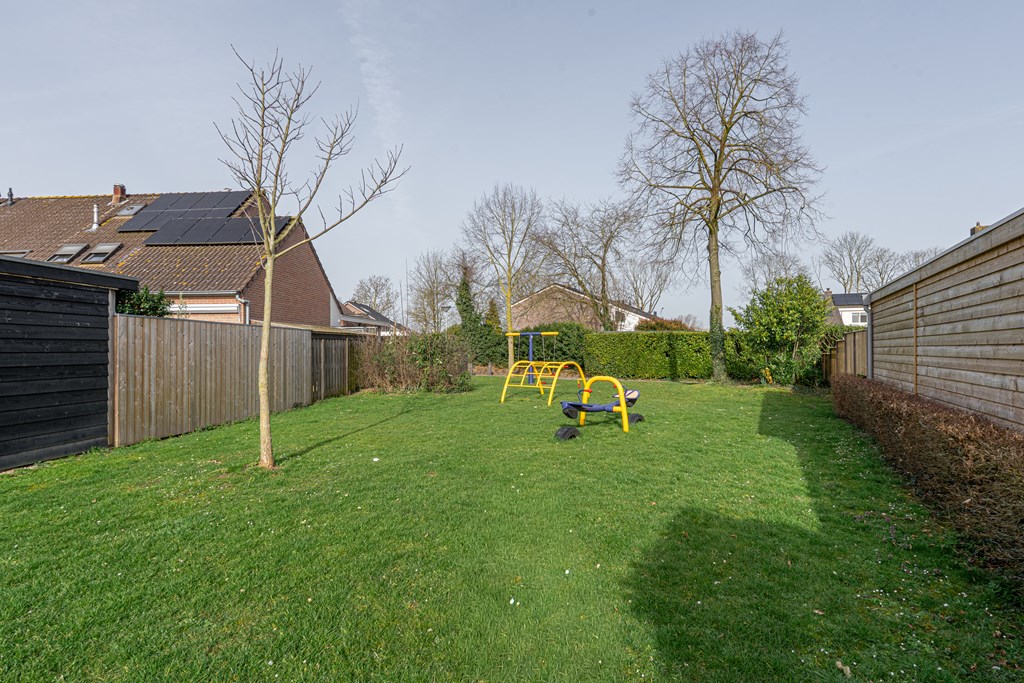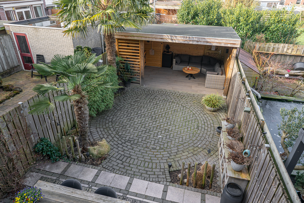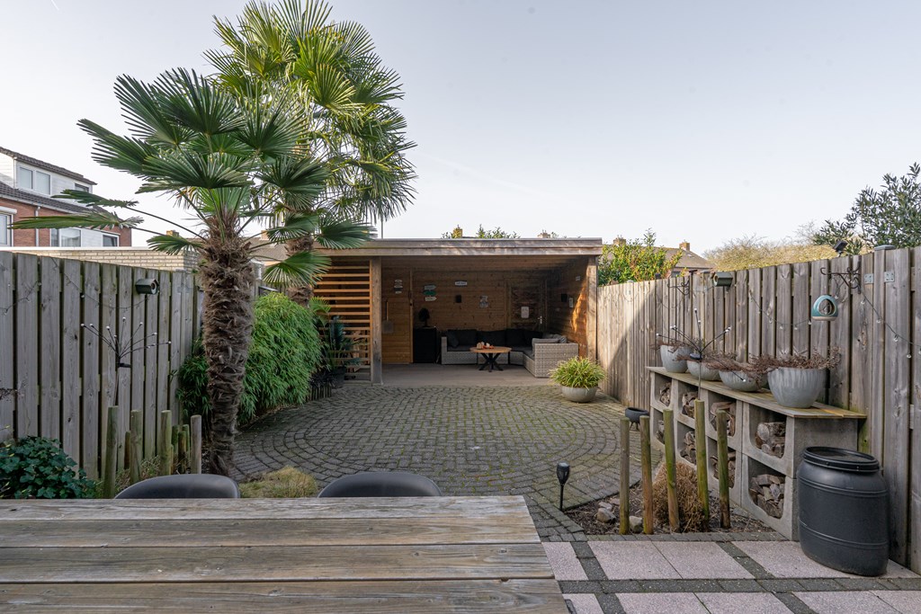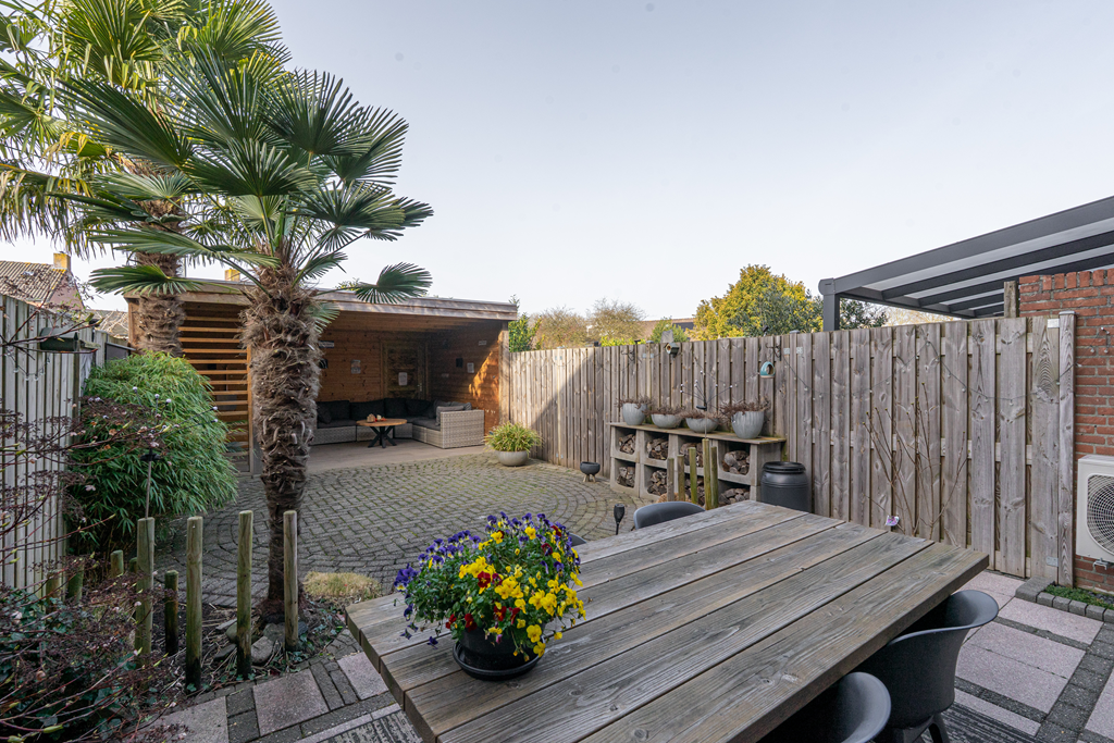 De achtertuin is gelegen op het zuid-westen en heeft daardoor de gehele middag en avond zon. Vanuit de woonkamer bereik je de achtertuin middels de openslaande deuren. Vanwege het elektrische zonnescherm en een ruime overkapping aan de achterzijde heb je ondanks het weer altijd een plek om buiten te zitten. Ideaal als buitenkeuken of hobbyruimte. Door de vrije ligging aan de achterzijde heb je veel privacy.