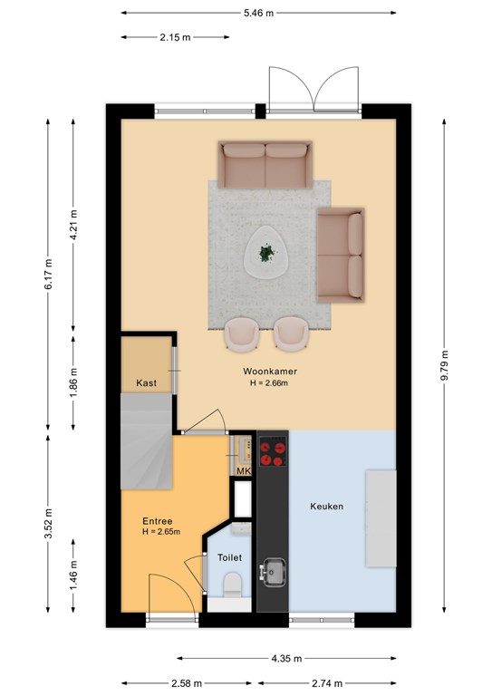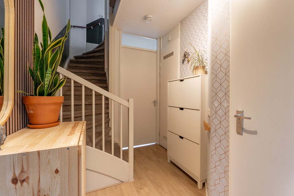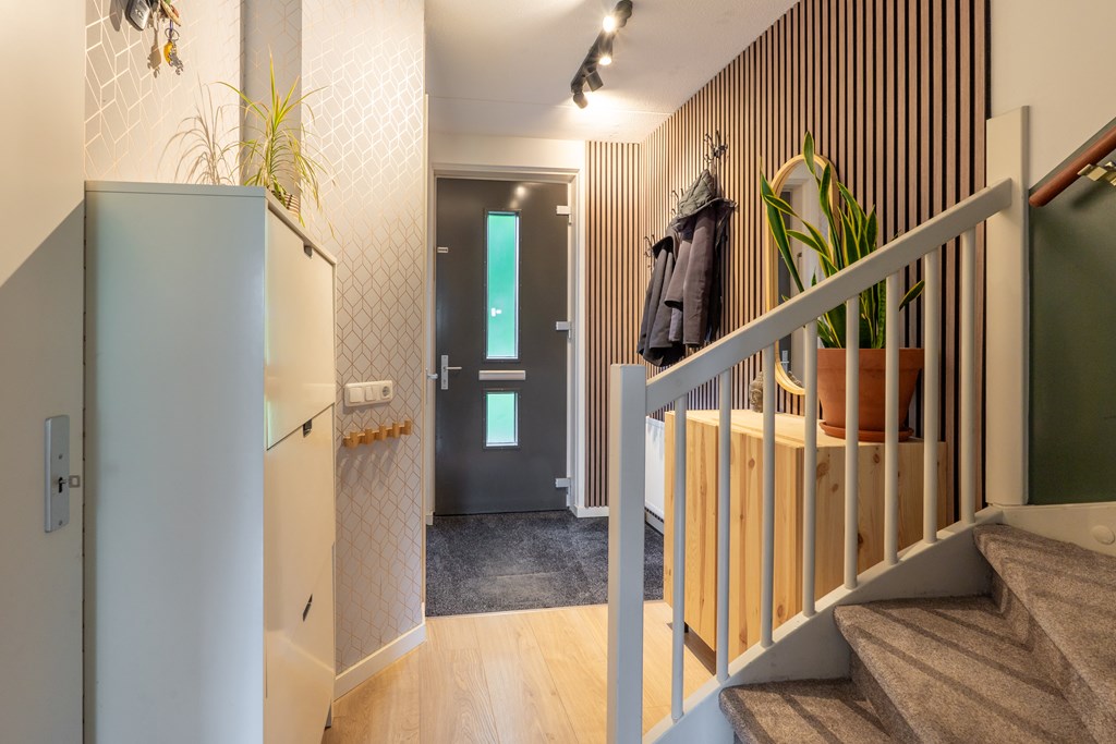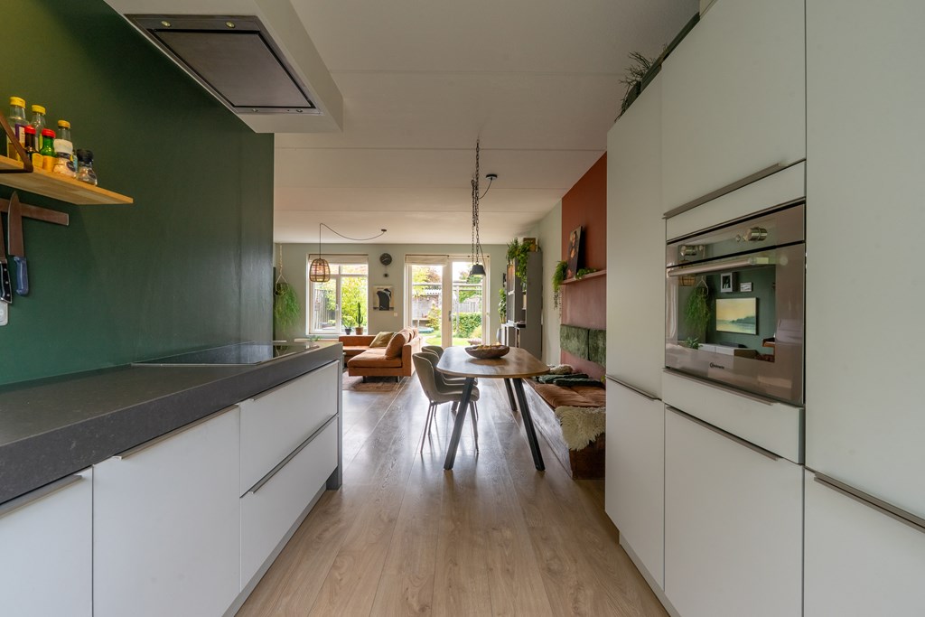 Aan de groenstrook vind je de woning met voortuin en achterom via het zijpad. Via de voordeur bereik je de hal van de woning met trapopgang, toilet en garderobe. De moderne keuken met diverse inbouwapparatuur is gelegen aan de voorzijde van de woning. Vanuit de keuken heb je een fijn uitzicht over de groenstrook aan de voorzijde. Aan de achterzijde van de woning vind je de ruime woonkamer met uitzicht over de achtertuin. Daarover later meer!