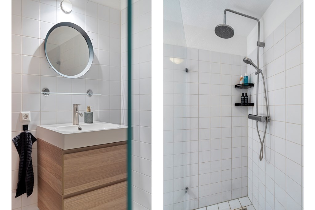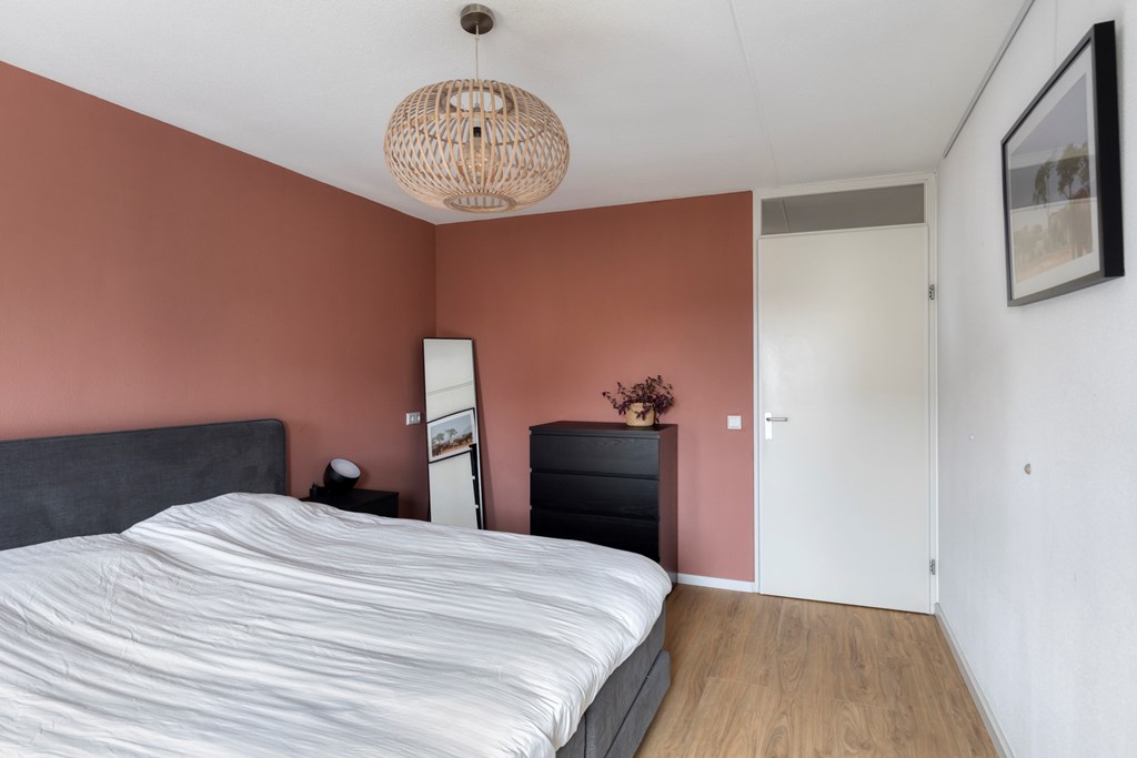De slaapkamers zijn circa 14 en 9 m2 en beide voorzien van een nette afwerking en rolluiken. De badkamer is voorzien van een inloopdouche en wastafel met meubel. Het separate toilet met fonteintje is modern afgewerkt. Daarnaast is er een separate ruimte voor de wasmachine en droger.