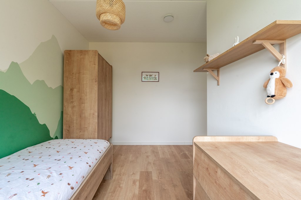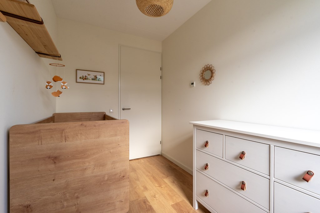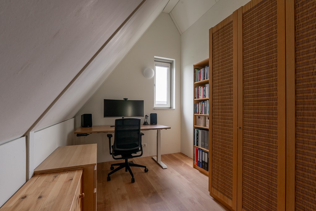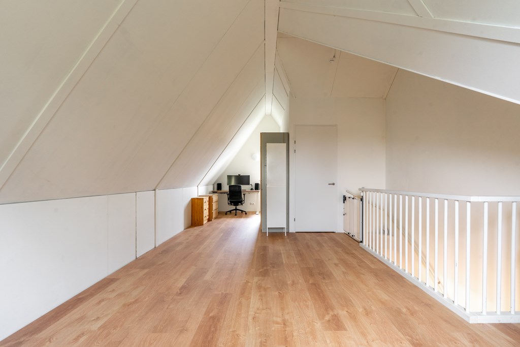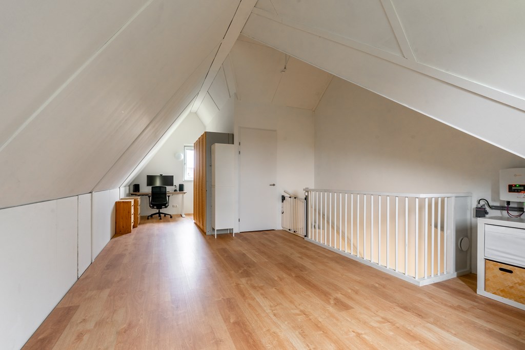 Deze verdieping is momenteel nog een grote open ruimte met witgoedaansluitingen en een aparte bergruimte met WTW-installatie. Door een verbouwing zou er een nieuwe indeling kunnen ontstaan met twee slaapkamers of bijvoorbeeld een extra badkamer.